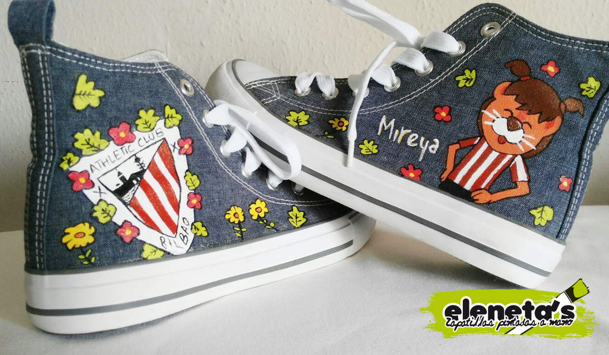 Las eleneta’s – Zapatillas personalizadas pintadas a mano, tenían que tener un diseño que fuera totalmente enfocado para una niña, pero a la vez mezclara una de las grandes pasiones de la niña a la que se las iban a regalar: el Athletic de Bilbao.